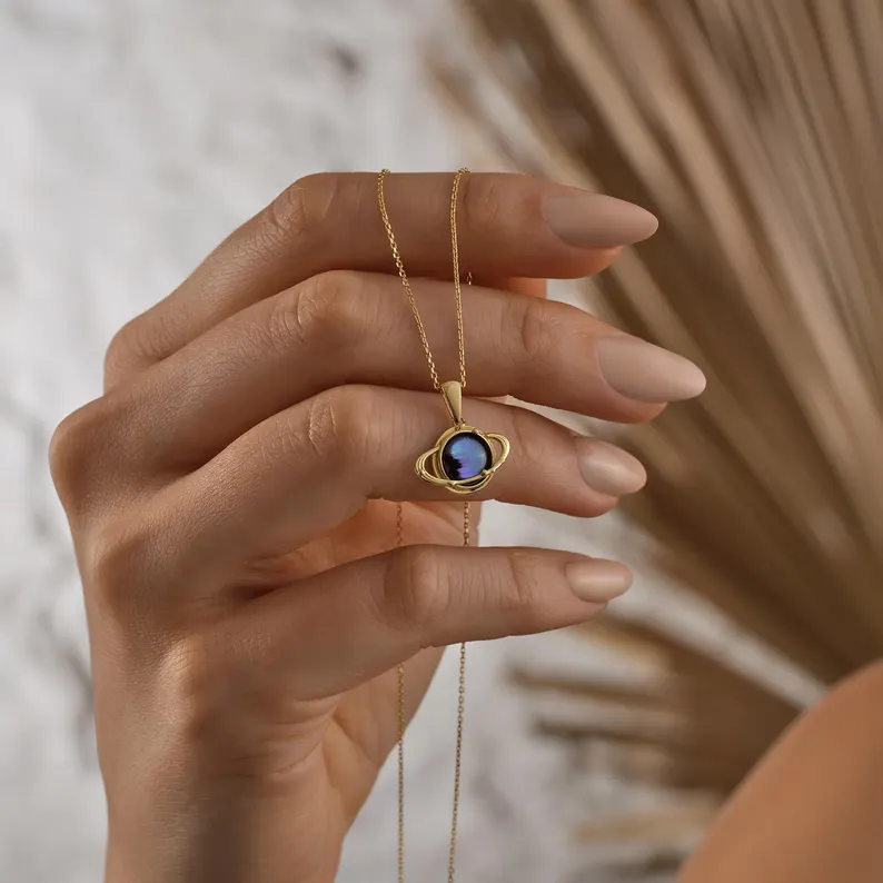 Saturn Planet Necklace – 14K Solid Gold Saturn Pendant Necklace – Dainty Gold Celestial Necklace – Space Galaxy Jewelry – Unique Gift Her