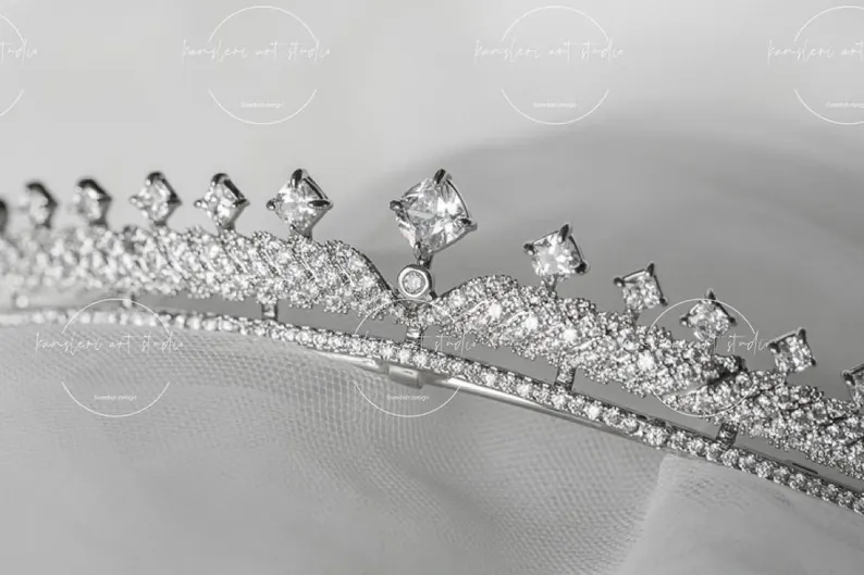 Embrace the royal charm with this 24K white gold plated bridal tiara, designed to make you the center of attention on your special day. Inspired by classic royal jewelry, this stunning crown is adorned with 5A-grade premium zircon stones, radiating brilliance and adding a magical glow to your look.