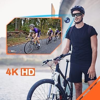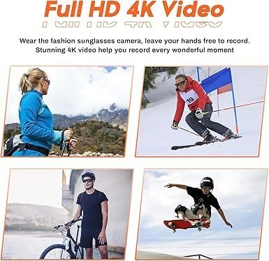 - 4K HD Sunglasses Camera: It’s a perfect combination of glasses and camera. The appearance is a fascinating sunglasses, 100% UV400 protection polarized lens, protect your eyes from harmful UV rays, reflected light, make vision clear, comfortable and not dazzling. Then it’s a camera for taking picture and amazing video but without audio