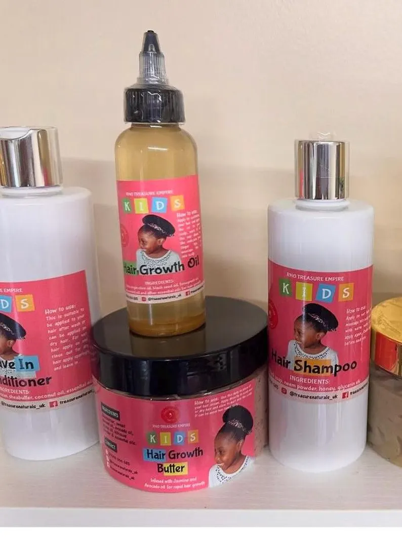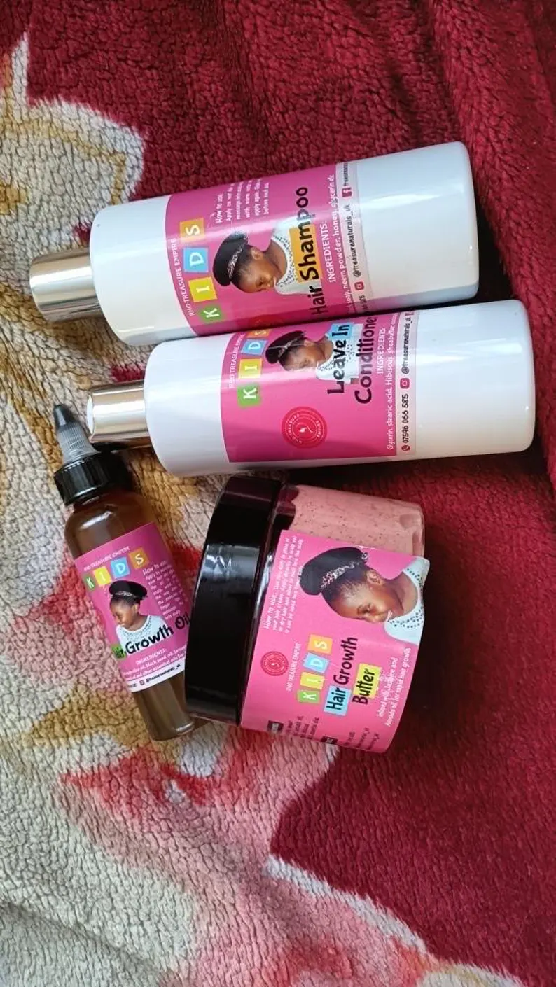 Kids Hair Growth Set :Hair Growth Butter +Kids hair growth oil +Kids Honey and black soap Shampoo+Leave in Conditioner