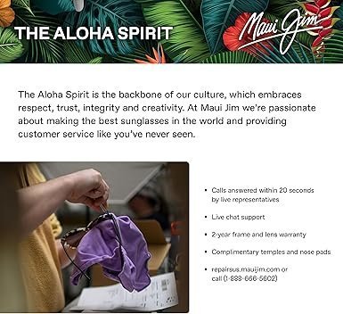 • MauiBrilliant is Maui Jim’s most advanced lens material that features optics nearly as clear as glass with just one-third of the weight.
