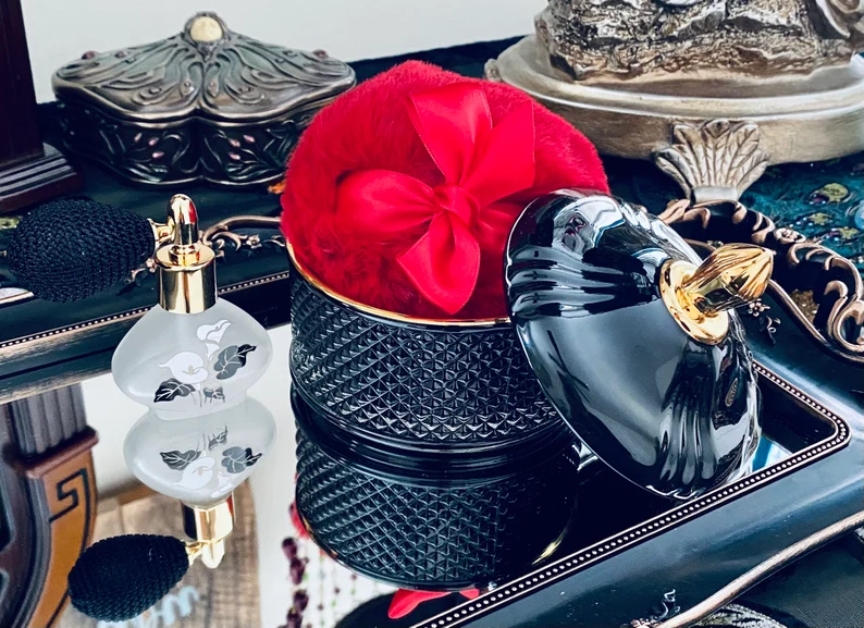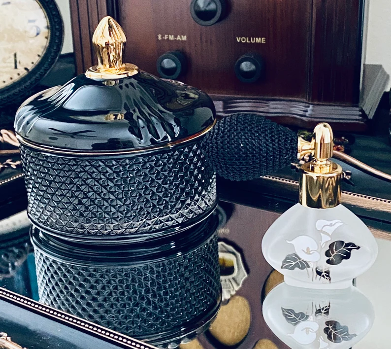 1924 ART DECO BOUDOIR Poudre Jar and Perfume Bottle Vanity