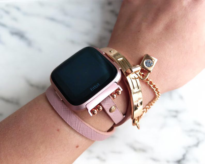 - Materials: Handmade Fitbit band, Fitbit Versa rose gold band, Vegan leather Fitbit strap, Gift for her Fitbit band, Fitbit band with charm, Versa watch band women, Fitbit Versa jewelry band, Fitbit Versa vegan leather band, chic fitbit band, fitbit versa 3, fitbit sense, fitbit watch gold, fitbit watch bracelet
