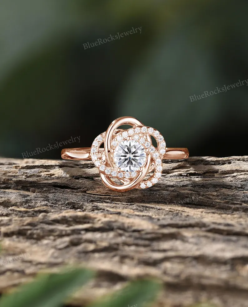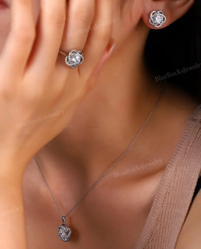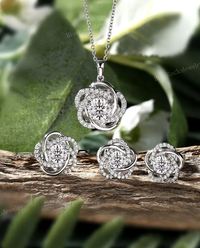 Unique Infinity Knot Moissanite Jewelry Set,Wedding Pendant Ring Stud Earrings Set,White Gold Bridal Wedding Jewelry,Custom Anniversary Gift