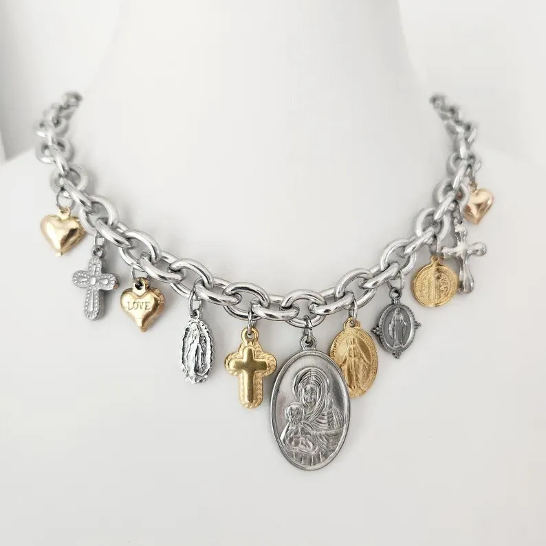 Vintage Catholic Medals Necklace βͺChunky Catholic Necklace