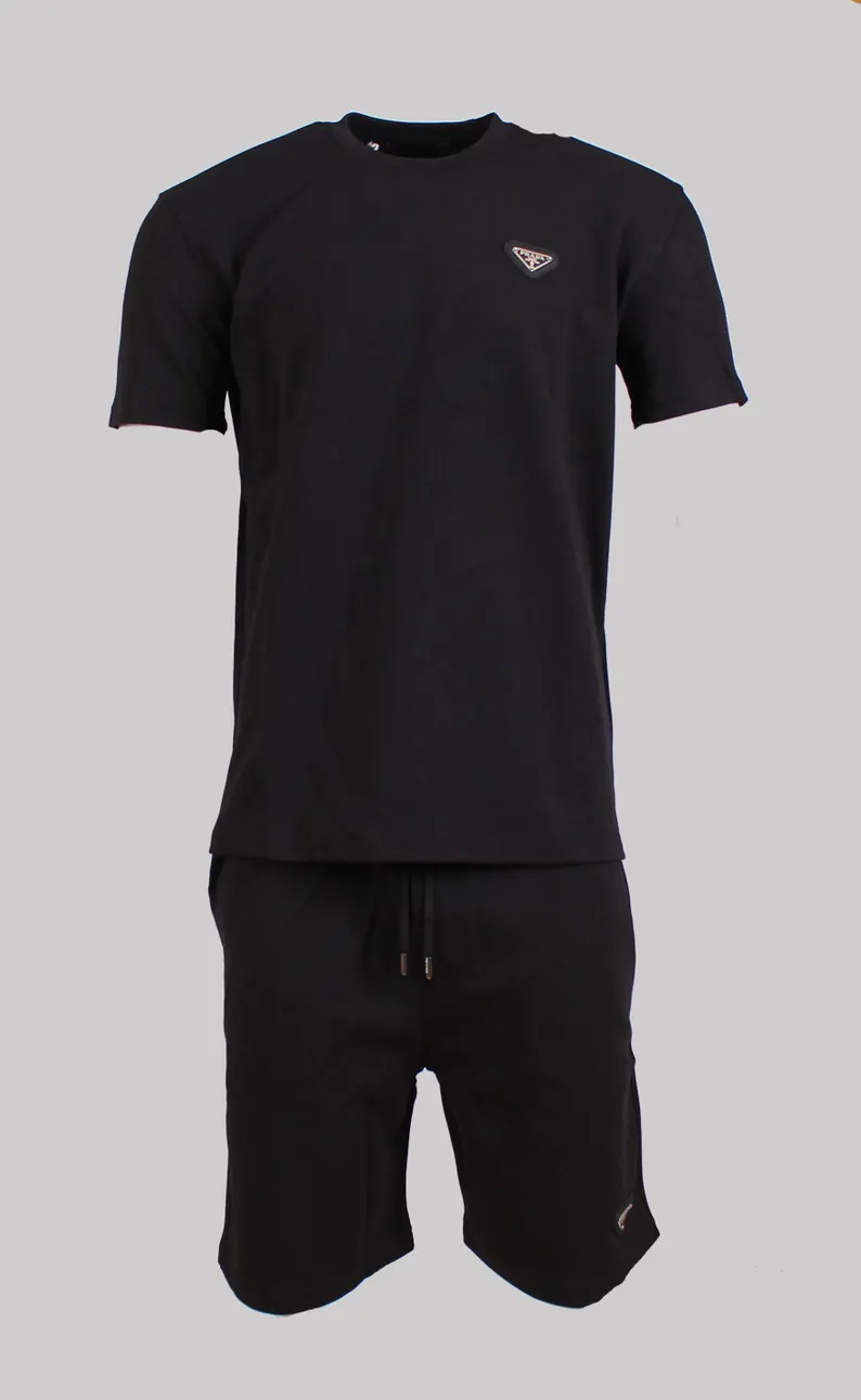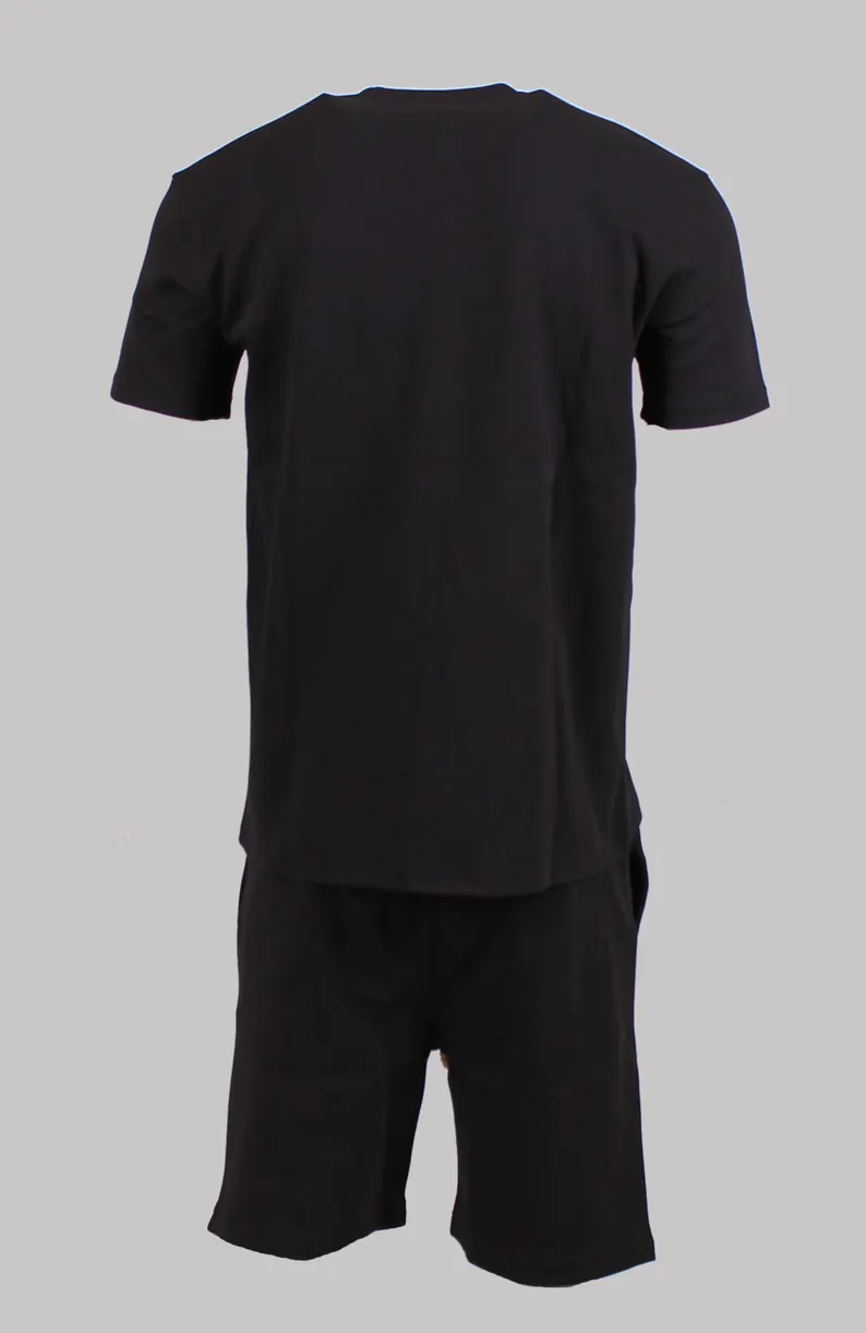 Vintage Men Sport Set Cotton t-shirt + shorts with Logo in Black Tracksuit