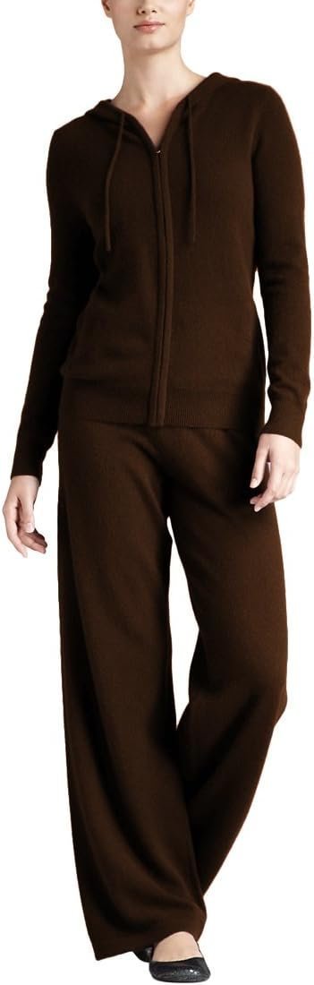 - This 2 Ply 100 percent pure cashmere women tracksuit can be worn as a sweater set, or as separates, the top is our classic hooded cardigan sweater, and the pants are a soft sweatpants, practical women 2 piece outfits sweater sets that goes with everything